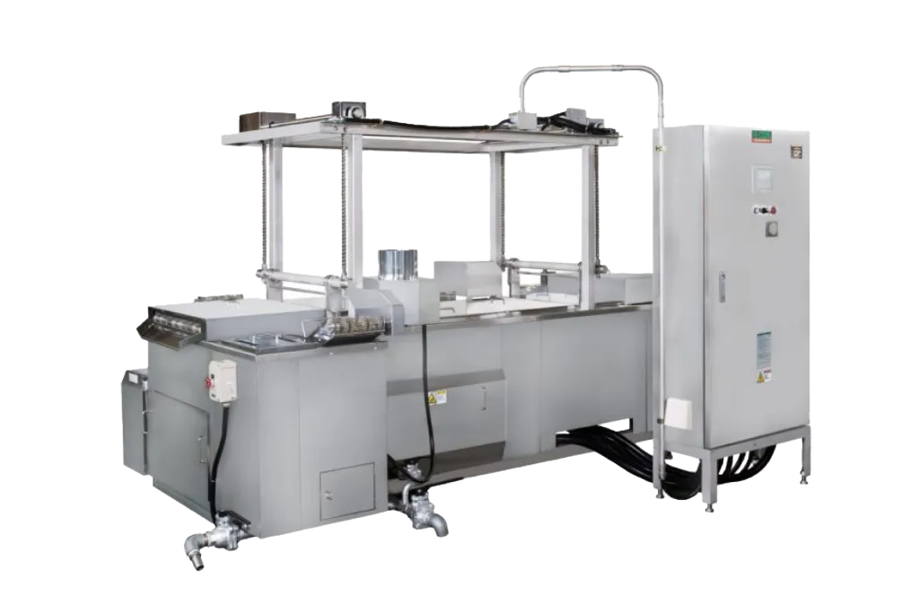 HI-COOKのハイブリッドフライヤーは、蒸気加熱+電気加熱の“いいとこ取り”で省エネとスピードを両立します。低温域は蒸気で、高温域は電気で加熱し、内蔵コンピュータが温度を監視して最適な熱源へ自動切替。蒸気で素早く温めるため数分で調理温度に到達し、待ち時間と電力使用量を大幅に削減します。