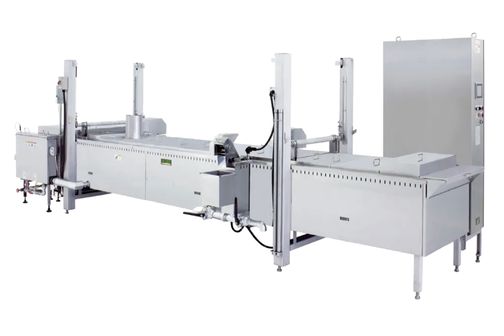 熱源であるヒーターは搬送コンベヤの中に設置しており、フライヤーからの放熱は油面からのみとなります。