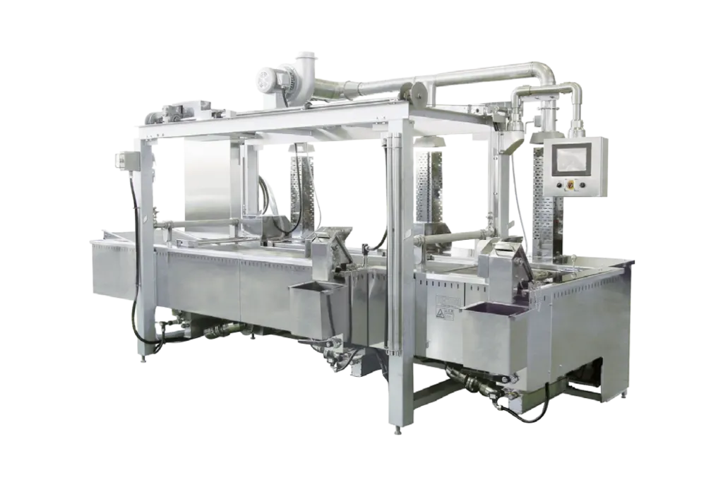 投入口・中央部・出口 の油温を管理する 3点温度制御 と、改良を施した燃焼炉構造 によって、各ゾーンの温度ムラを抑え、安定した商品づくりを可能にします。