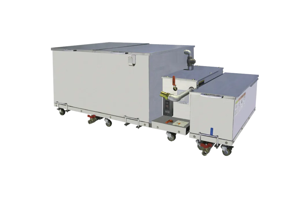 フライヤー本体下に収納できるタンク式濾過機です。微粒カスまで濾過を行うことで油本体の寿命が延び、いつでも美味しい揚げ上がりをキープ。廃油交換コストの削減・環境への配慮にもつながります。