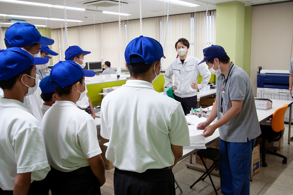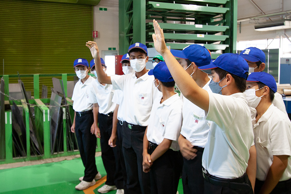 生徒の皆さんは各フロアや工場に入る度、大きな声で挨拶をしてくださり、礼儀正しく元気のある姿に当社社員も皆元気を貰っていたように思います。